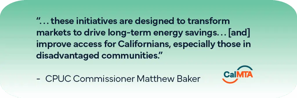 SAN FRANCISCO, Dec. 2, 2025 – The California Public Utilities Commission (CPUC) unanimously approved the first-ever statewide energy efficiency Market Transformation Initiatives (MTIs) for California. The MTIs, proposed by CalMTA (the California Market Transformation Administrator), are designed to work with manufacturers and market supply chains to accelerate market adoption of energy-efficient products that will help realize the state’s goals on efficiency and decarbonization. CalMTA is a program of the CPUC and is administered by Resource Innovations, Inc.
