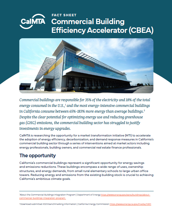 The Commercial Buildings Efficiency Accelerator fact sheet describes the opportunity, technology, market transformation strategy and equity considerations for this initiative.